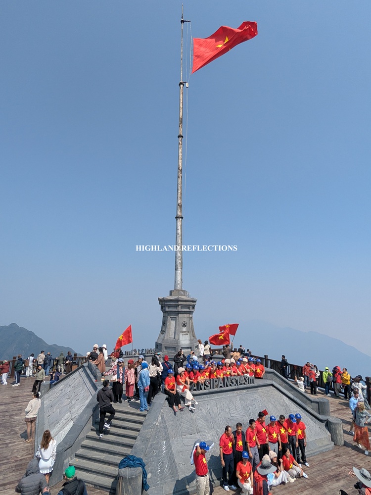 Even at midday, tourists flocked the summit area of Fansipan. Our guide gave us medals for successfully summitting the mountain, which, of course, we pridefully wore as we were taking pictures at one of the summit markers. Snapping pictures here was quite a challenge as we needed to negotiate with the other tourists to let us have our turn! Still, even if we were sharing the space with lots of people, our spirits were high and we were gleeful with the accomplishment in spite of our tired and battered bodies and legs. As we were celebrating the hard-earned accomplishment, a flag-raising ceremony was taking place.