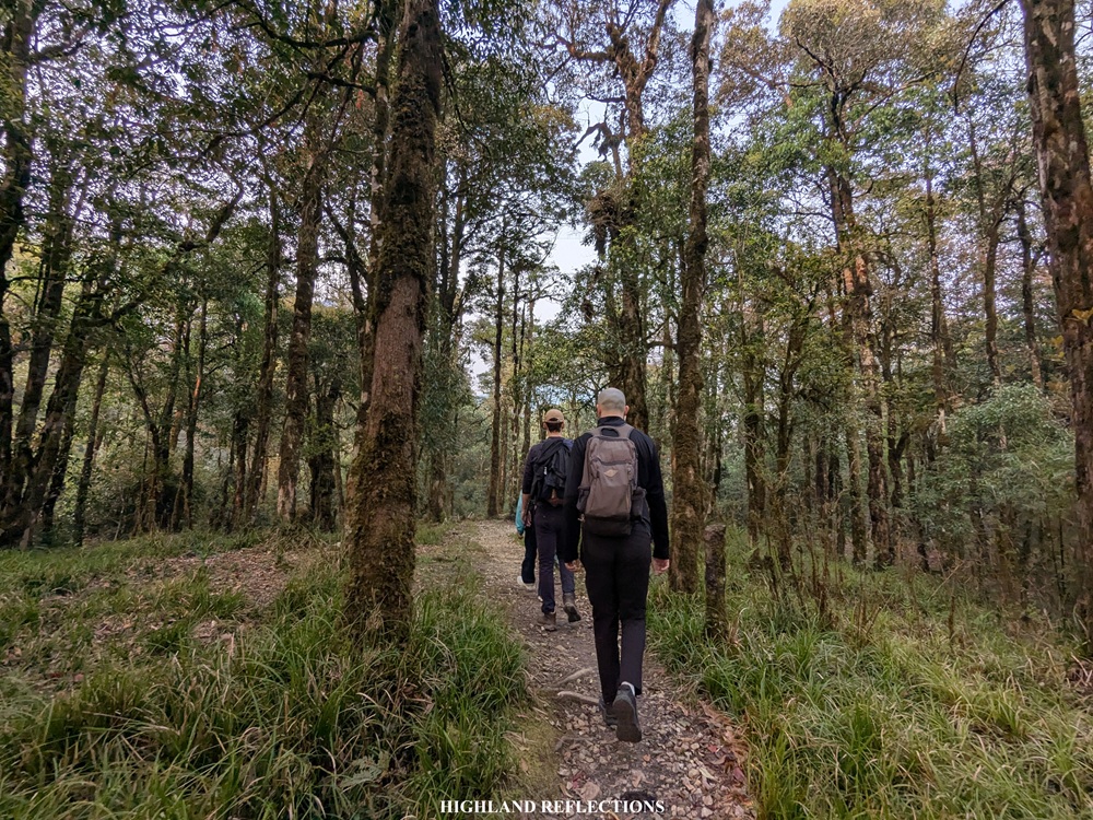 With our reenergized bodies, we continued with the last push towards the summit. Given that Camp 2 is located around 2,840+ masl, we only have three hundred meters of elevation left to reach the pinnacle of this hike. From Camp 2, we ascended shortly up another section of bamboo forest before making a left turn towards a long flat section that traverses the entire mountainside. To our left, we had views of the slopes that we passed through earlier, now seemingly below us!