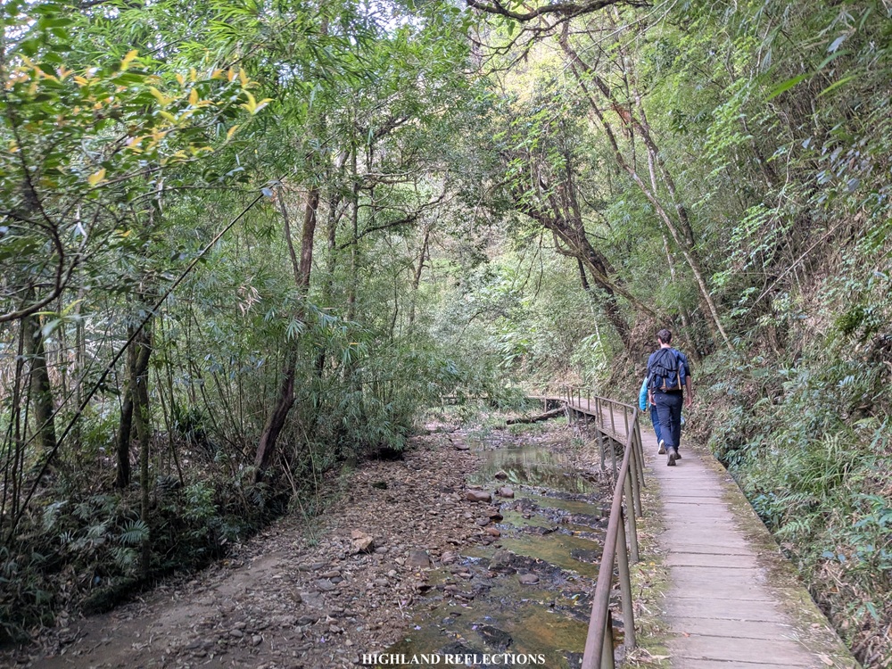 The trail starts at the rear part of the station, where a beautiful lush forest and a creek welcomed us. The trail was mostly rolling with a mixture of ups and downs before exiting towards an open section that provides views of the mountain range up close. We had our first rest here as we were still adjusting from the first round of ascents.