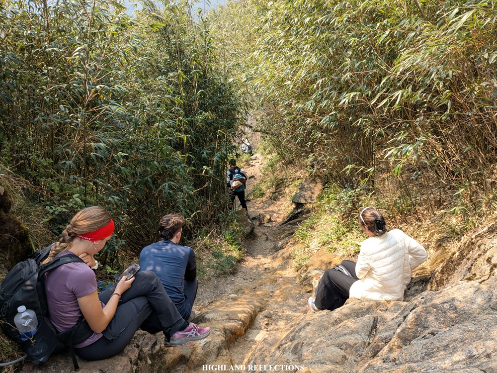 At Camp 2, we joined with the other hikers from other groups having their lunch inside the bunker. We savored the long rest as our guides were cooking and preparing our lunch for us. After an hour, we finally had our hearty lunch consisting of chicken pho and some sliced fruits such as apples, oranges, and sweet, sweet mangoes. The mangoes were thankfully as sweet as the ones we have in the Philippines!