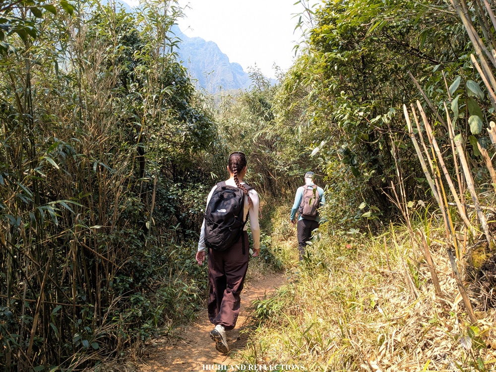 From the church, it took us less than thirty minutes of traversing the zigzagging highway to reach the Nui Xe Ranger Station (~1950 masl). On the way to the park, we had magnificent views of the Hoang Lien Son Mountain Range and the sun rising somewhere in the east. These views were also present even at the ranger station, where we could see the numerous domes, slopes, and ridges of the mountain range towering above us. I was excited to get in those mountains and finally have a taste of Vietnamese hiking! Finally, at 6:45 in the morning, we started the hike.