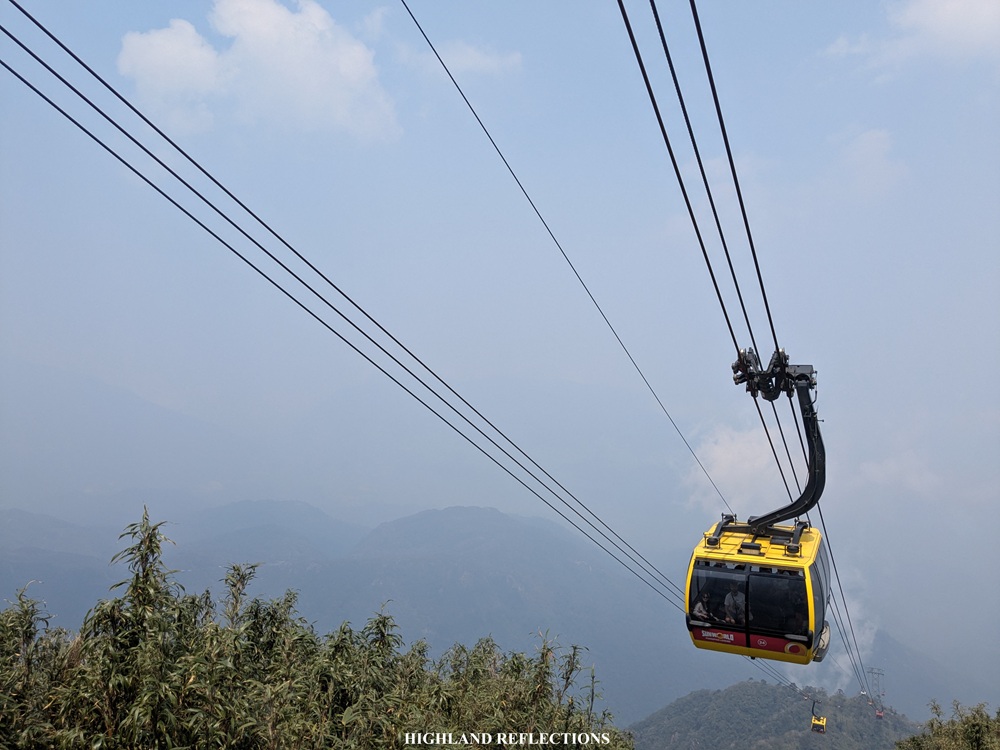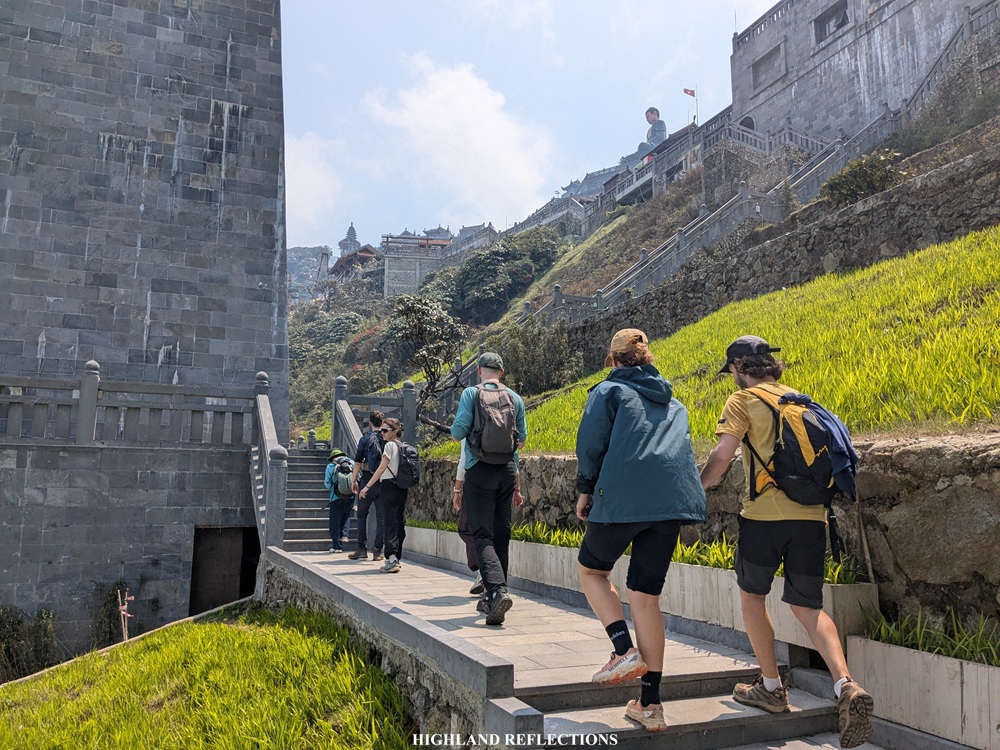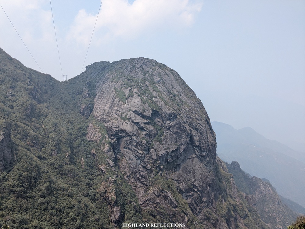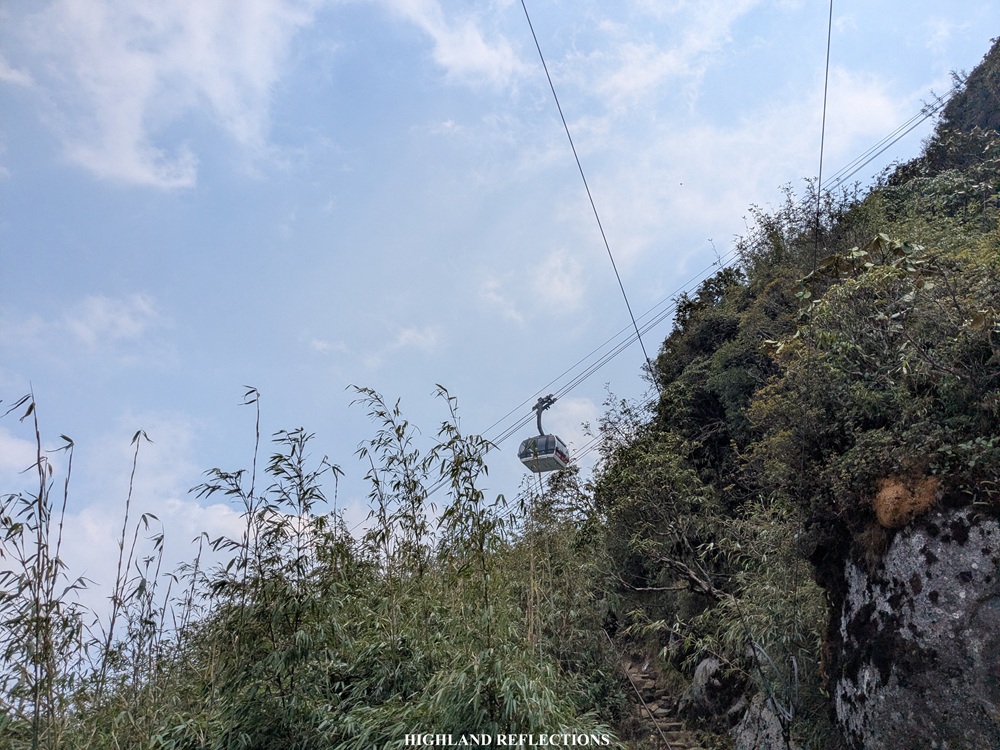 After the descent, we took on the last leg of the trail before entering the summit complex. We initially climbed the last steel staircase and climbed until we were directly below the cable car station. Above us, some cable cars were passing by, and we were saying hello to the passenger tourists from below! We also had a magnificent view of the boulder peak that we passed through, and below it, the slopes that we climbed on. Further away, we could spot the town of Sapa which was way, way below us! Seeing these views, I was quietly grateful for the good weather all throughout the hike. It was one in the afternoon.